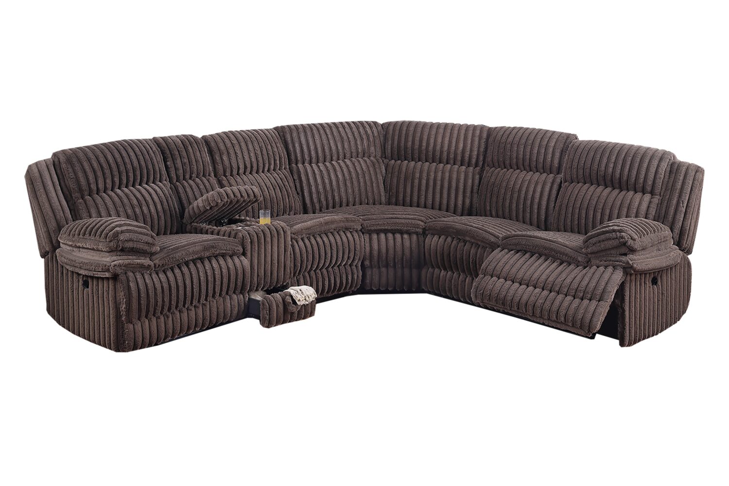 Designed to provide a cozy seating experience, this U-shaped sectional is upholstered in luxurious fur-like corduroy, offering a soft and inviting texture that complements its sleek design. The sectional is thoughtfully crafted with plush, thick armrests that cradle you in comfort while adding a touch of elegance to your living space. Each of the end chairs is equipped with a power button on the side of the arm, allowing you to recline effortlessly to your preferred position. A convenient USB port is also located on the side, so you can easily charge your devices while relaxing. The corner wedge completes the U-shaped design, providing ample seating space for family and friends to gather. The sectional includes a center console equipped with two cup holders, perfect for keeping your favorite beverages within reach during movie nights or relaxation time. The console also features a spacious storage compartment, ideal for stowing away remotes, magazines, or other essentials. Additionally, a small storage space at the base of the console adds extra convenience for organizing smaller items. Whether you’re entertaining guests or enjoying a quiet evening at home, this recliner sectional is designed to provide unmatched comfort and timeless appeal.